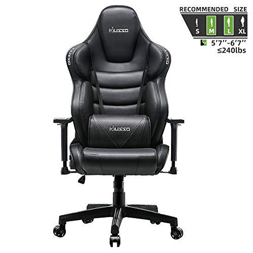 Pro gamers helped design this gaming chair. It is capable of supporting a maximum weight of 400 lbs, and it has an extra-large seat and backrest. The backrest stands tall at 33.5″. It comes with a detachable pillow for lumbar support and a removable headrest.